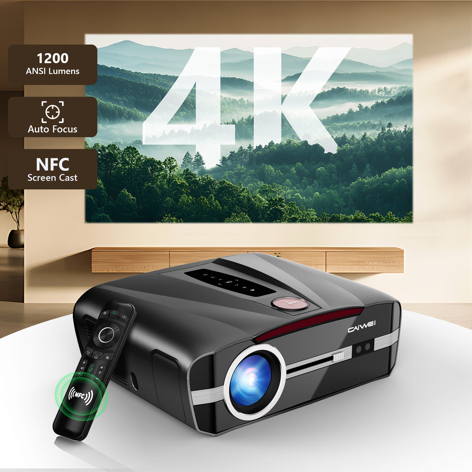 CAIWEI A9T 4K Projector with WiFi and Bluetooth, 1600 ANSI Lumens Daytime Projector with Android TV 9.0