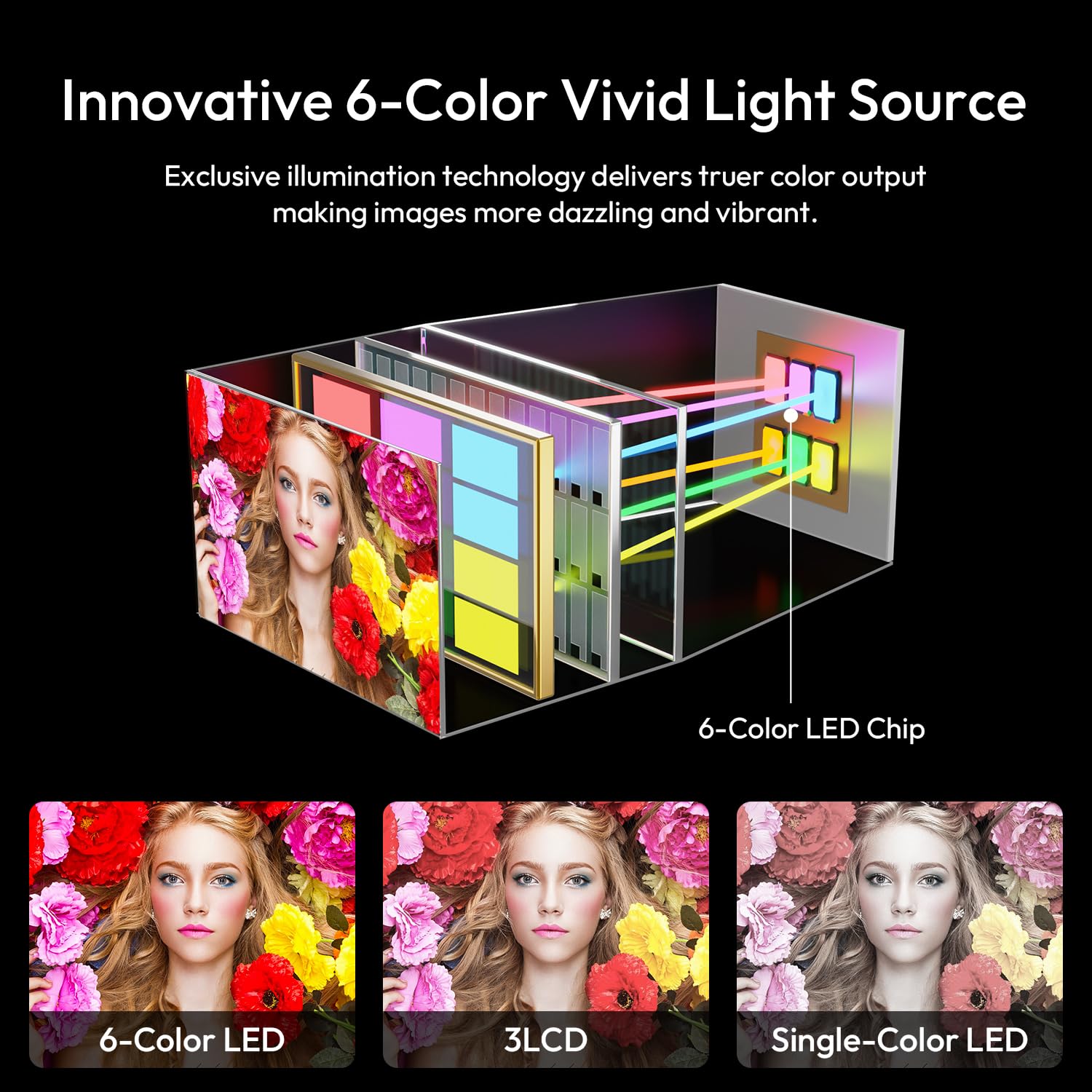 - [LIFE-LIKE VISUAL ] The A9T is equipped with a 6-colour light souce, which delivers more vibrant colours and greater colour accuracy, reproducing true-to-life colours