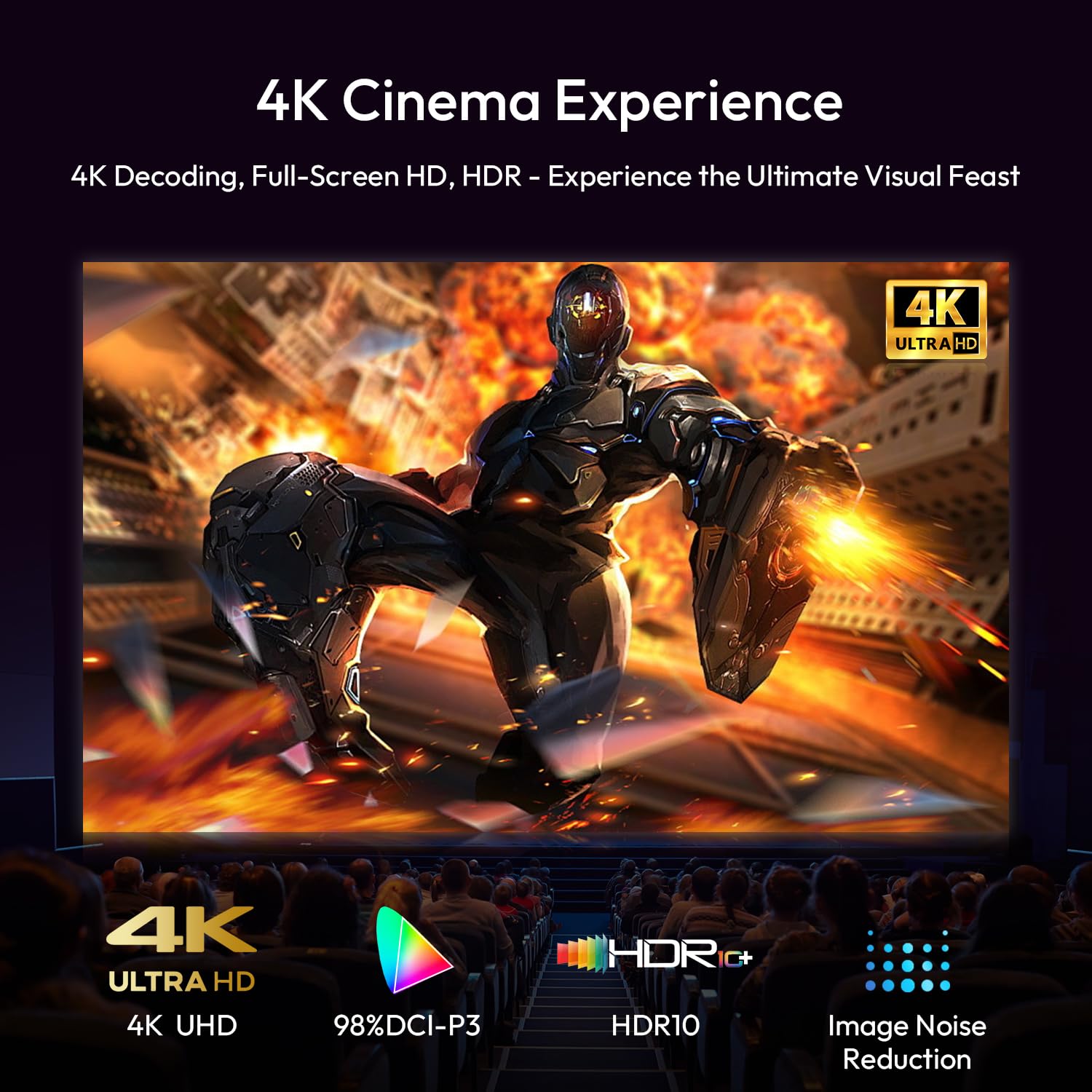 - [Android TV OS] The projector runs on the Android operating system, providing access to over 8000 applications, including popular streaming platforms like Netflix and YouTube