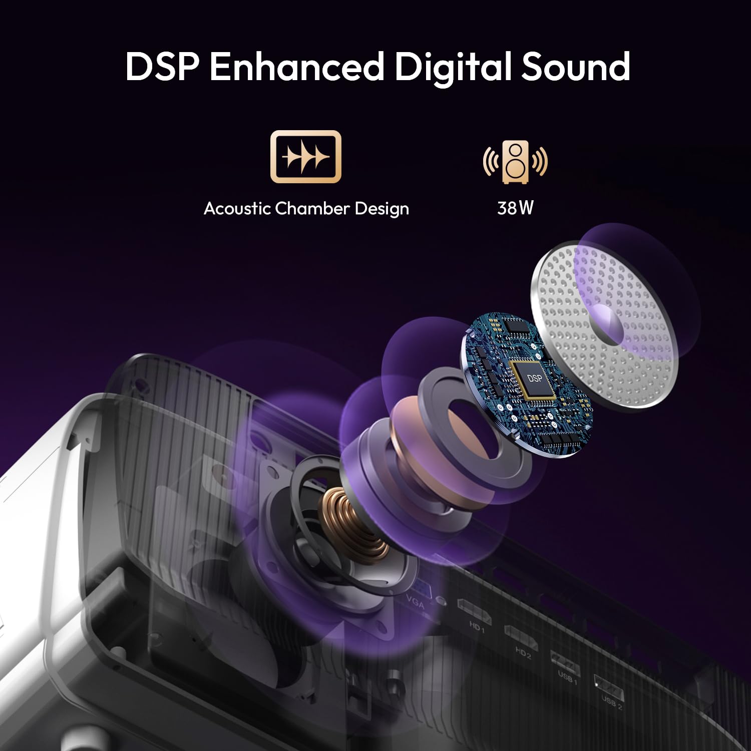- [Music Hall-level Audio] Experience a music hall-level audio visual experience with DSP digital sound enhancement, a 38W full-range speaker, and an extra-large cavity subwoofer