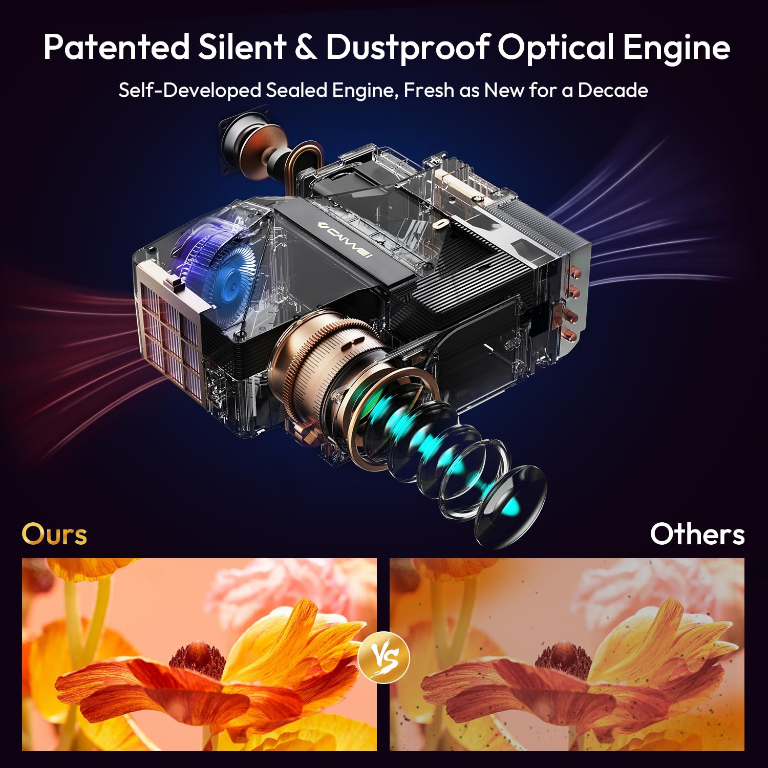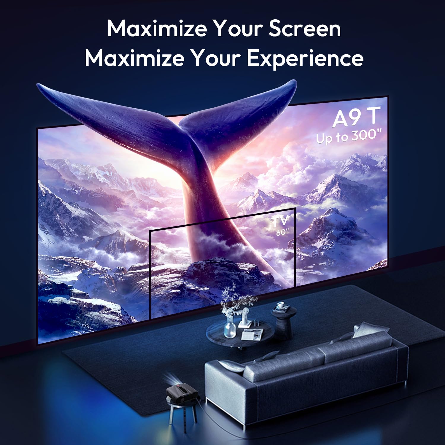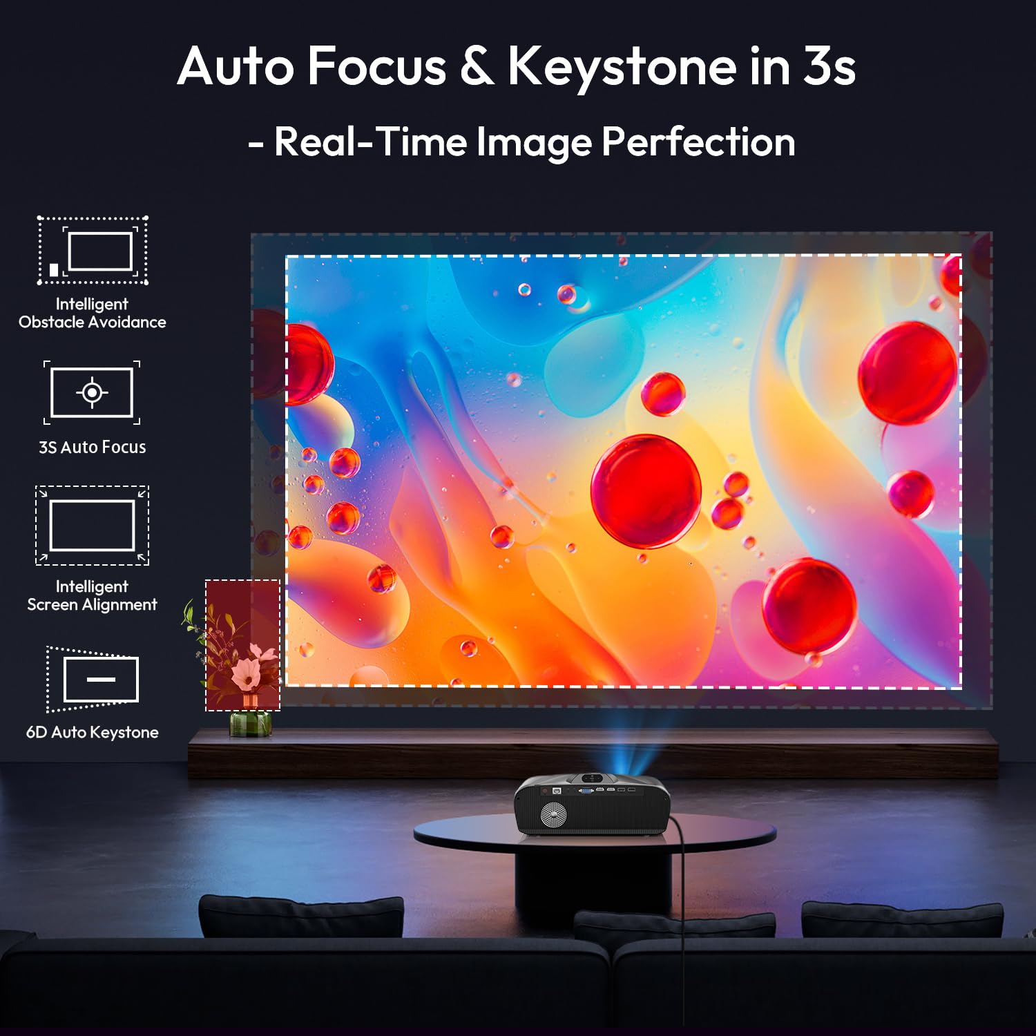 - [AI Image Adjustment Tech] The A9T features real-time auto-focus, keystone correction, obstacle avoidance, screen adaptation to wall color, and ambient light adaptation
